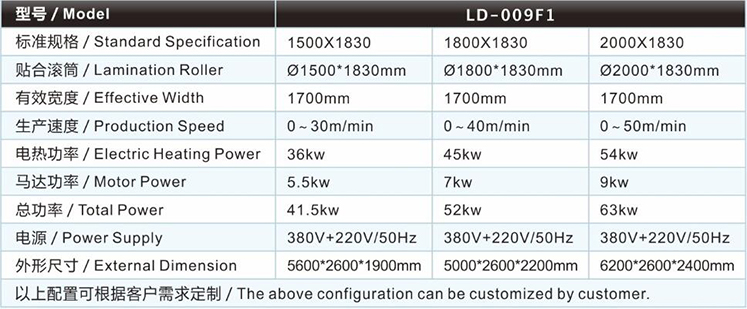 | 热熔膜复合机/贴合机LD-009F1 主要技术参数 / Major technical parameters |