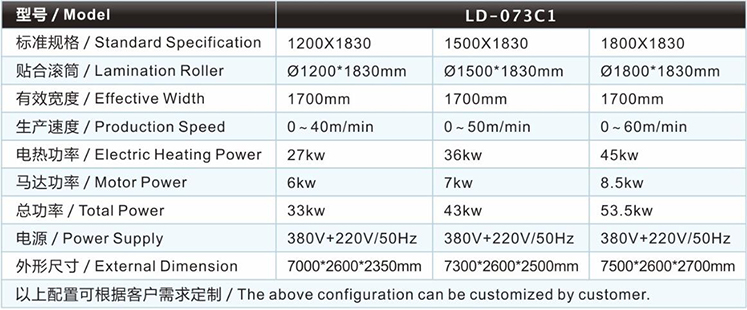 | 滤材复合机/贴合机-滤材复合分切机LD-073C1主要技术参数 / Major technical parameters |