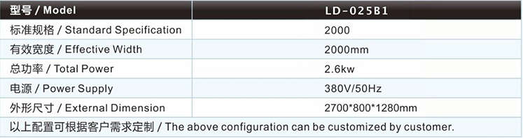 | 圆刀分条机(气动型)LD-025B1主要技术参数 / Major technical parameters |