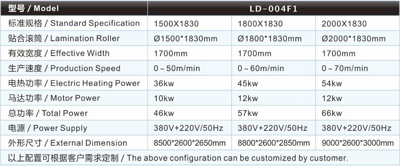 | 水胶复合机/贴合机-纸品包装材料复合机/贴合机LD-004F1的主要技术参数 / Major technical parameters |
