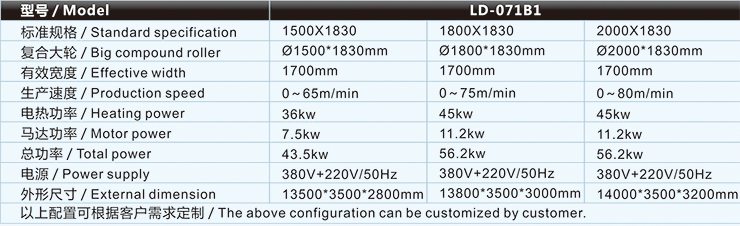| 火焰复合机/贴合机-高速火焰复合机/贴合机LD-071B1的主要技术参数 / Major technical parameters |